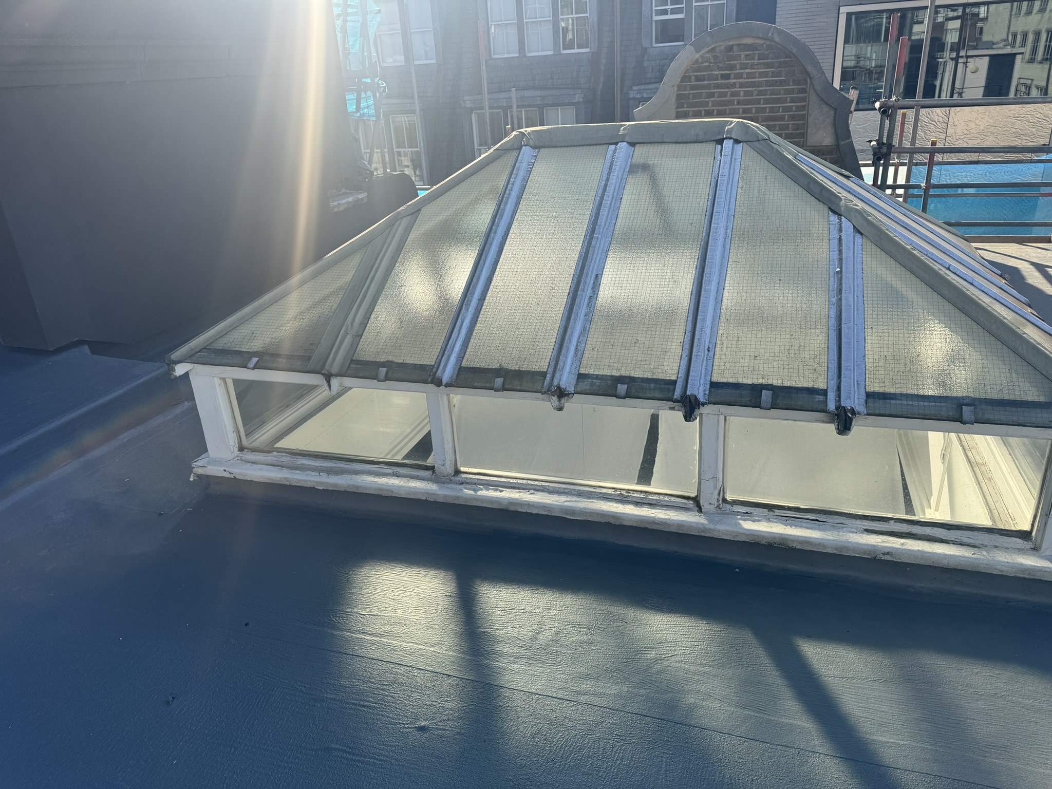 Bayanix was engaged as the principal contractor for a comprehensive roofing refurbishment project at 7-10 Rathbone Place, a mixed-use property in central London. Spanning seven roof areas across three buildings, the project involved the removal of the existing warm asphalt roof system and the installation of a Triflex cold-applied liquid warm roof system with a 20-year insurance-backed guarantee. Additional works included structural repairs, façade repointing, and the installation of a new single-pitched skylight in an occupied office.