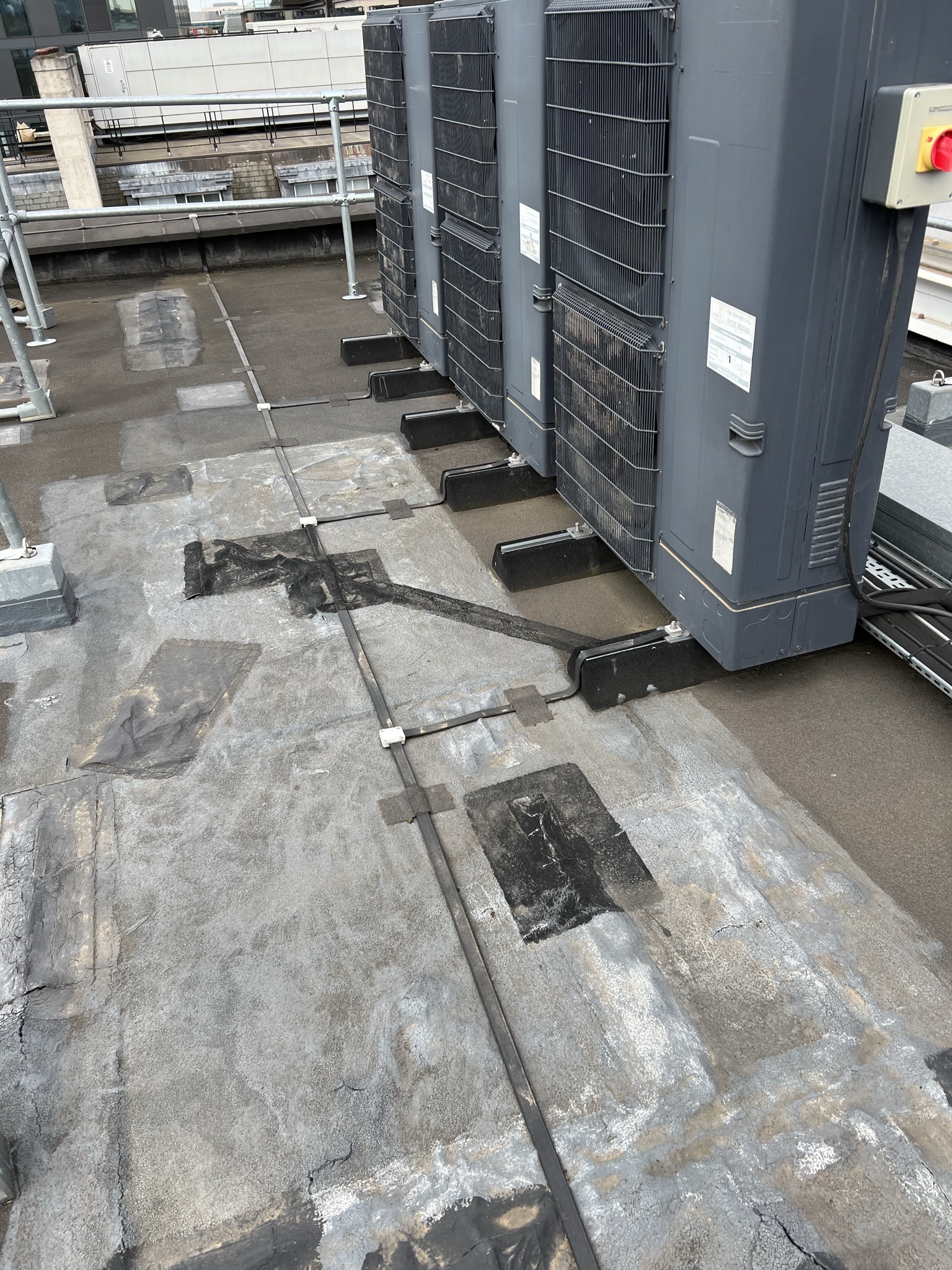 The client’s key objective was to replace the ageing roof coverings to extend the buildings’ longevity and ensure their structural integrity. The project also required repointing and structural pinning of the façade at 9 Rathbone Place, as well as moving and reinstating A/C condensers for a retail unit to accommodate the new roofing works.