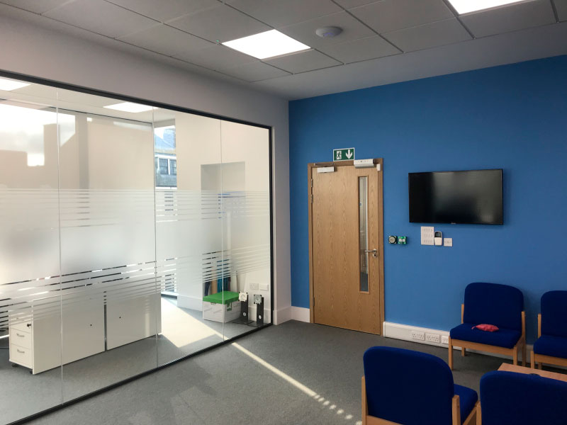 • Full Height Acoustic, Fire-rated drywall partitioning & Glazed partitions including 3mm skimmed walls (FFL to FCL) with decorations to walls and new skirting.
