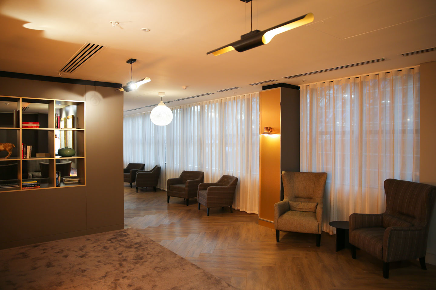 • 5.6m bookcase and luxury banquet seating.