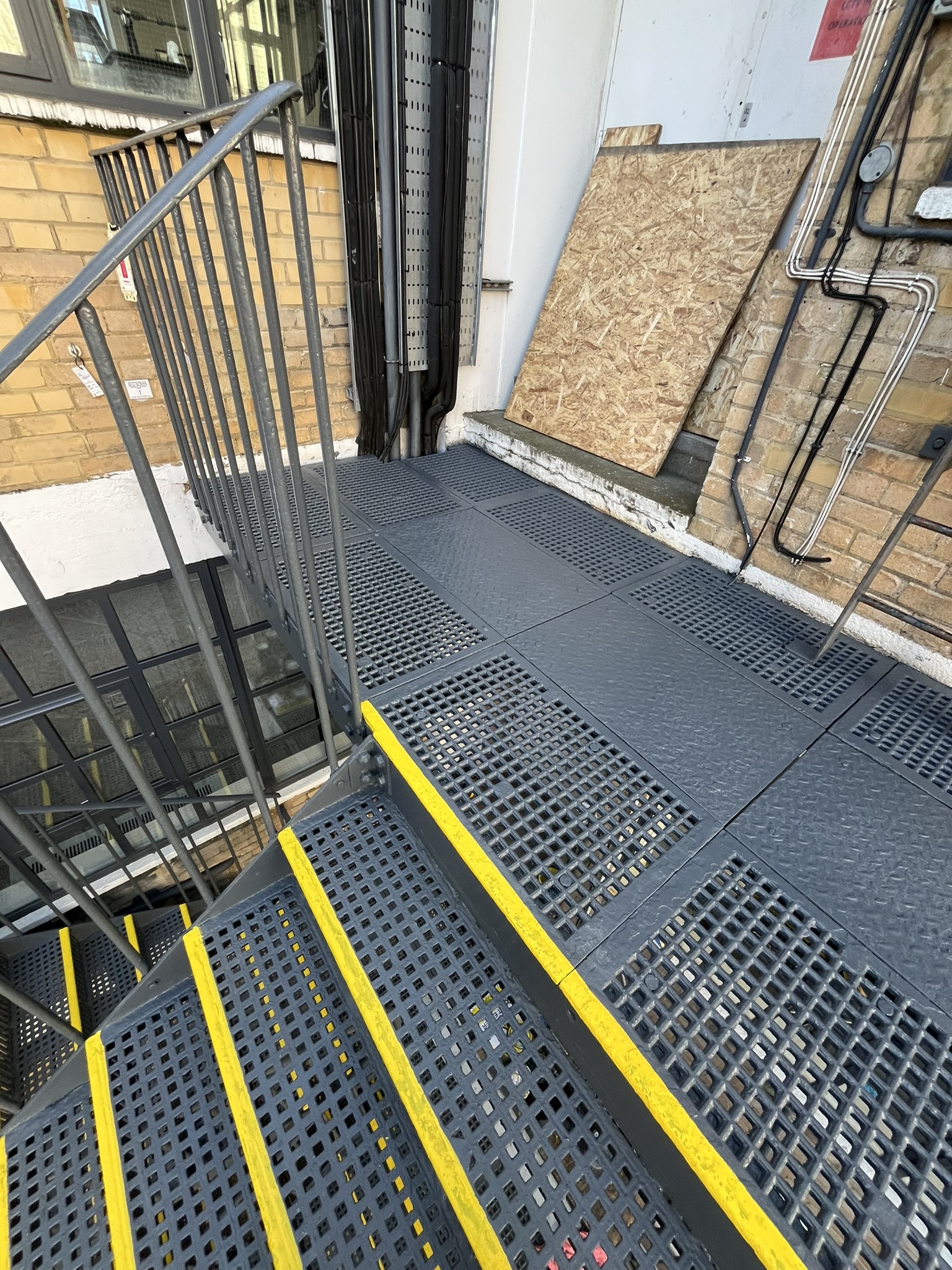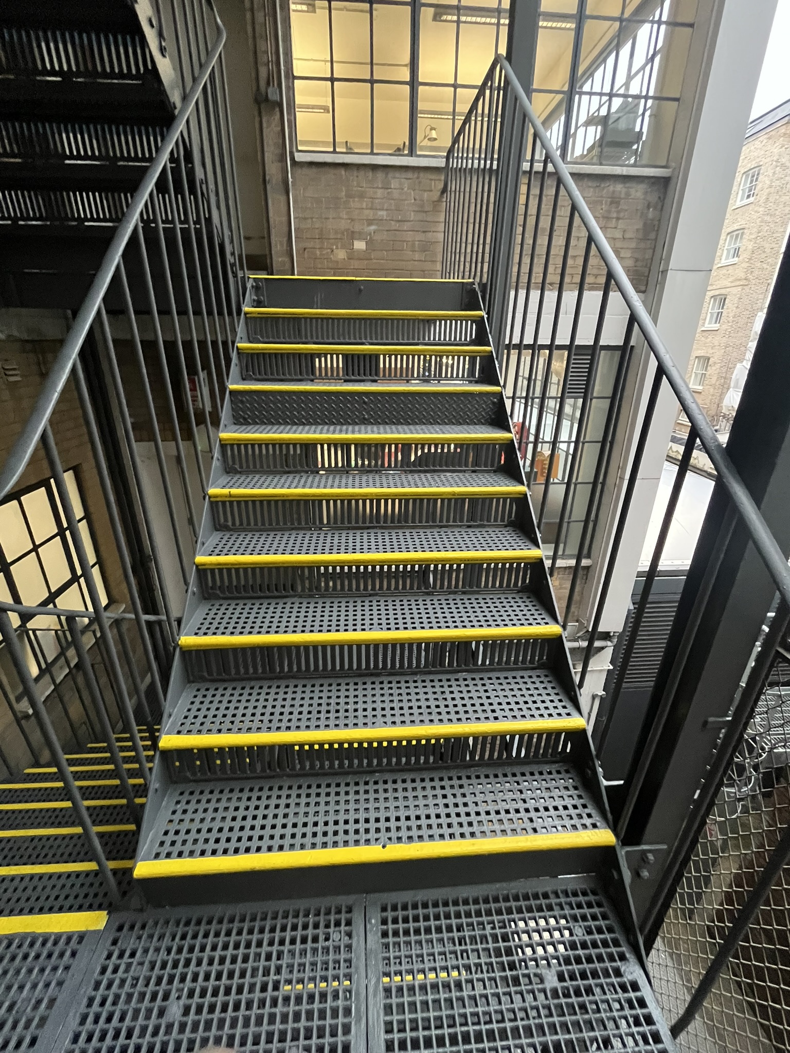 The refurbished staircase meets all safety standards and ensures a compliant fire escape for occupiers.